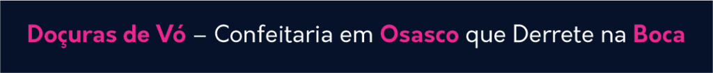 Seja para uma festa, lembrancinha ou lanche da tarde, a Docuras de Vó é a melhor opção de confeitaria em Osasco. Conheça o sabor que encanta gerações e descubra por que nossos clientes voltam sempre!